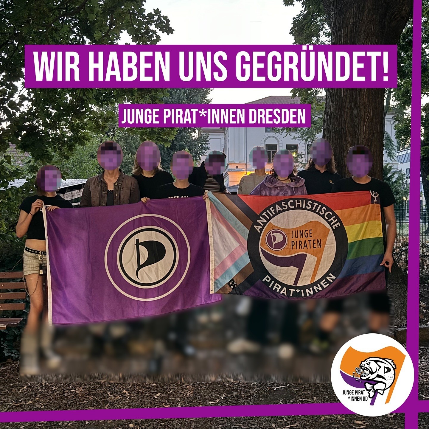 Hallo! Wir haben uns als Jugendgruppe neu gegründet. Wir stehen den Piraten Dresden nah, agieren jedoch parteiunabhängig. Wir stehen für Werte wie konsequenten Klimaschutz, Gleichberechtigung, demokratische Teilhabe und Basisdemokratie, Antikapitalismus, soziale Gerechtigkeit und Humanismus. Ebenso setzen wir uns für Dezentralität, freie Kommunikation und einen freien Zugang zu Wissen ein. Überwachung, staatliche Repression und gruppenbezogene Menschenfeindlichkeit lehnen wir ab.