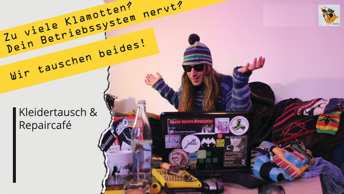 Komm vorbei zum Kleidertauschparty-Repaircafé mit Linux-Install-Party! Wir bringen Werkzeug, freie Software und manchmal auch eine Nähmaschine mit.